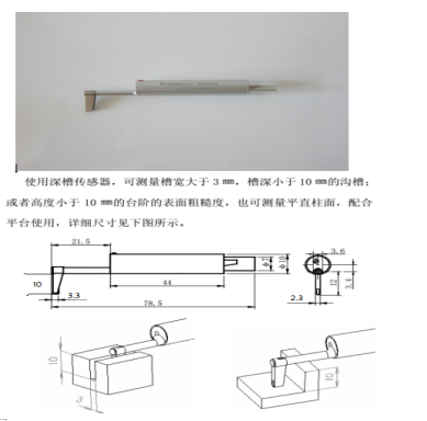 以下附傳感器圖片、尺寸、適用范圍;以及粗糙度儀附件圖片、使用說明
